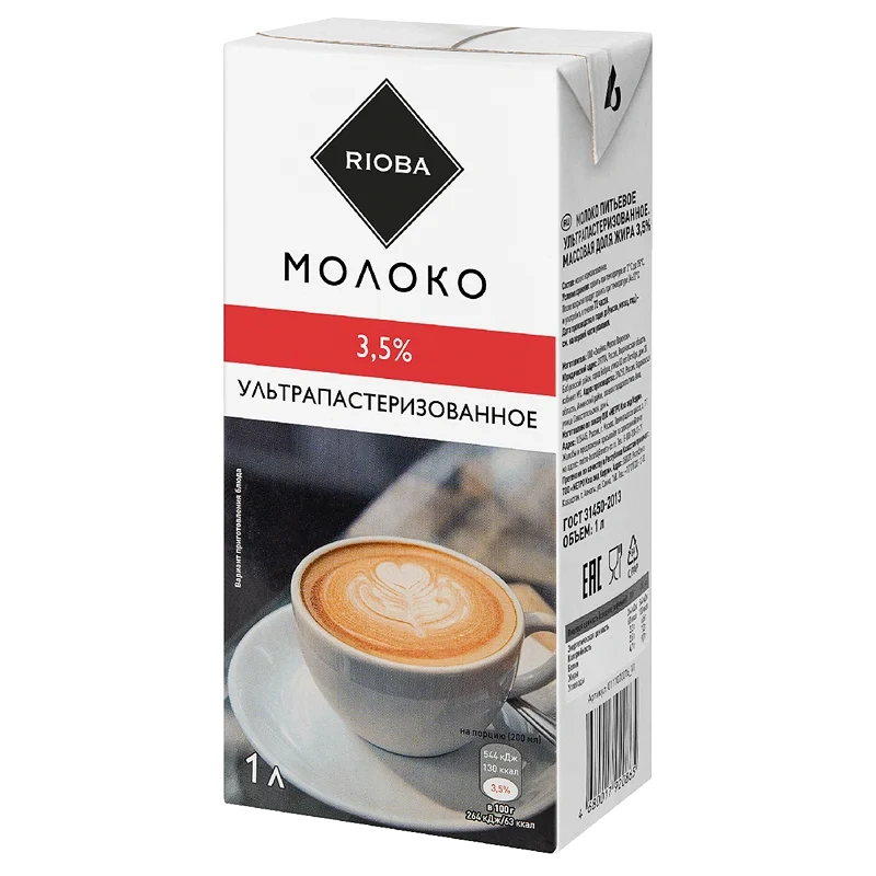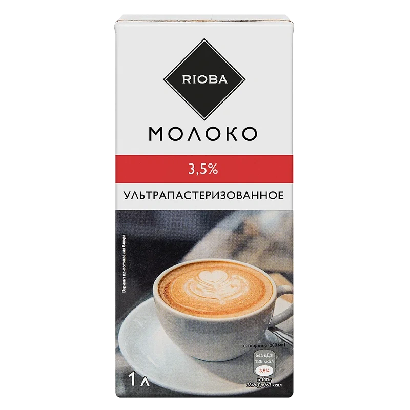 Молоко Rioba стерилизованное 3,5%, 1 л, изготовленное из нормализованного коровьего молока, является прекрасным вариантом как для употребления в качестве самостоятельного продукта питания, так и для приготовления с его использованием различных блюд. Это молоко не требует кипячения и хорошо взбивается, приобретая сладковатый вкус и образуя пенку, что делает его идеальным вариантом для добавления в капучино. За счет пастеризации и упаковки типа тетра пак продукт характеризуется большим сроком годности.