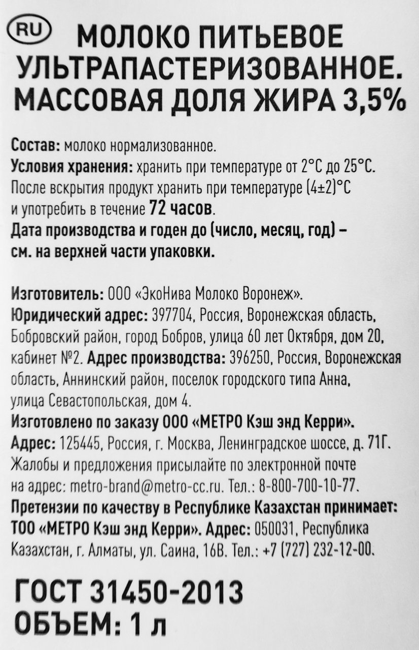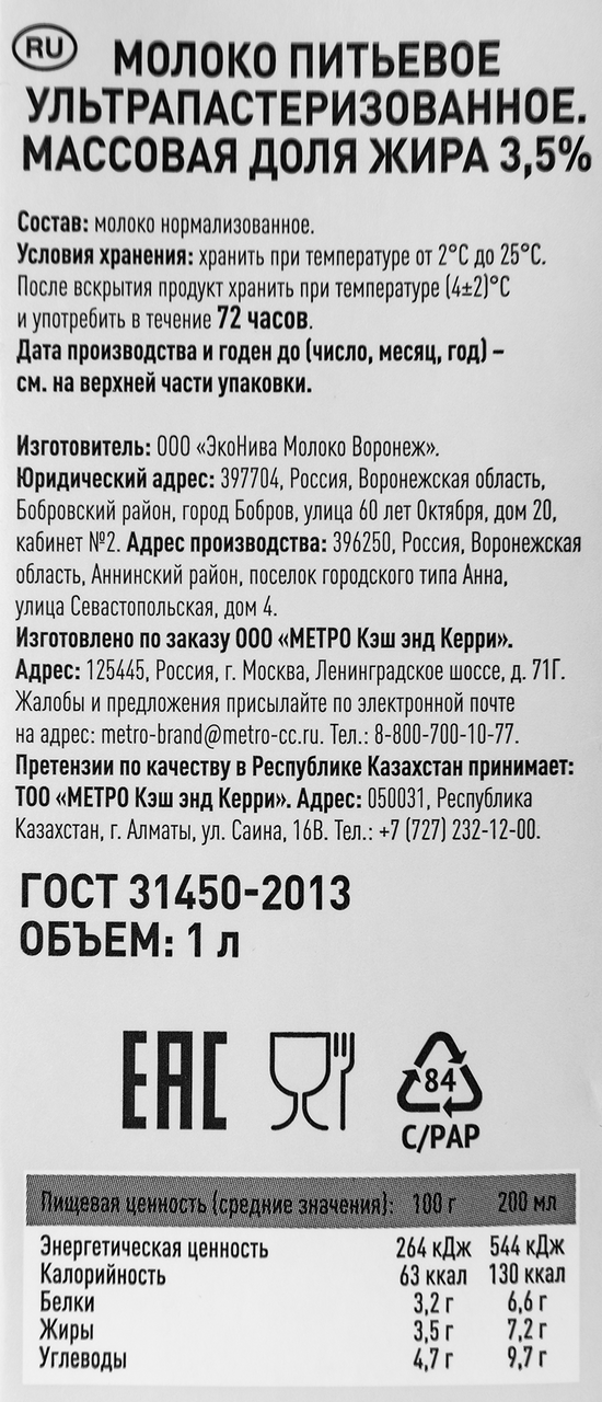 | Жирность, % | 3.5 |