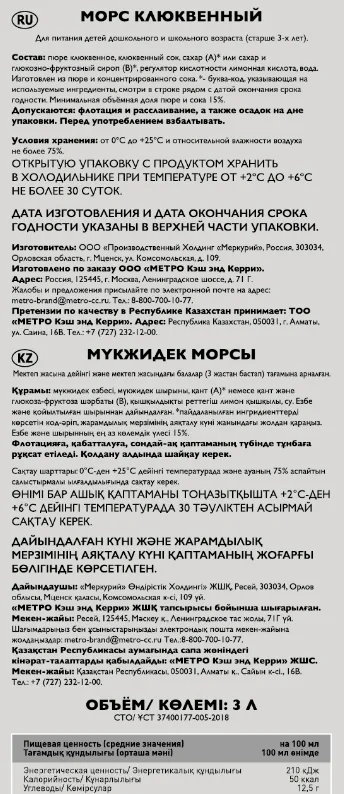 Поможет освежиться в жаркую погоду и зарядиться природной пользой натуральных спелых ягод круглый год. Напиток не содержит красителей, консервантов и других синтетических добавок. Поможет активизировать деятельность иммунной системы и обмен веществ. Традиционно клюкву использовали как жаропонижающее средство. Это поможет справиться с простудными и вирусными заболеваниями. Асептическая упаковка с краном, который не пропускает при его использовании кислород внутрь, что позволяет сохранять открытый морс 30 суток в холодильнике - это очень удобно для использования продукта с большим литражом.