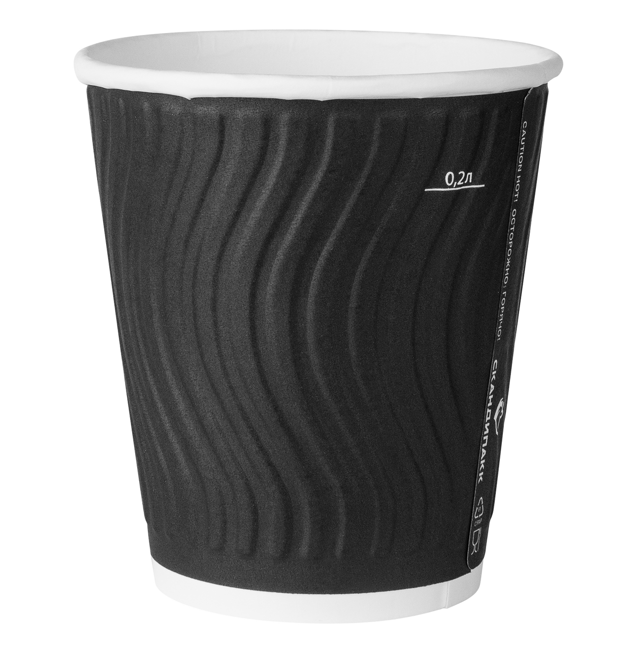Стакан одноразовый Rioba черный, бумажный, черный волна, 200мл, 50шт