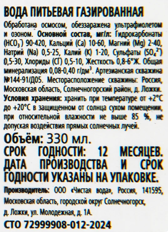 | Газирование | газированная |