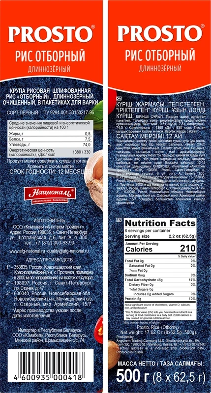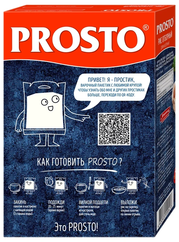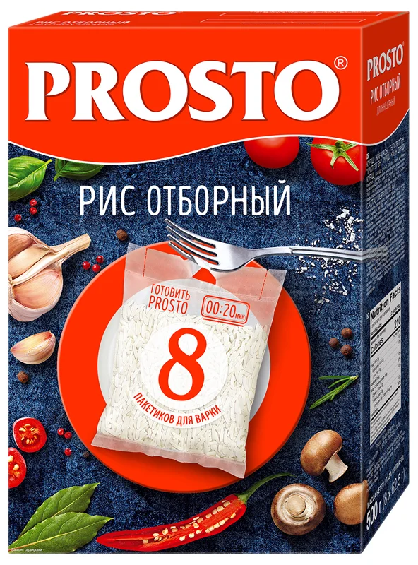 Рис Prosto Отборный длиннозерный (62.5г x 8шт), 500г