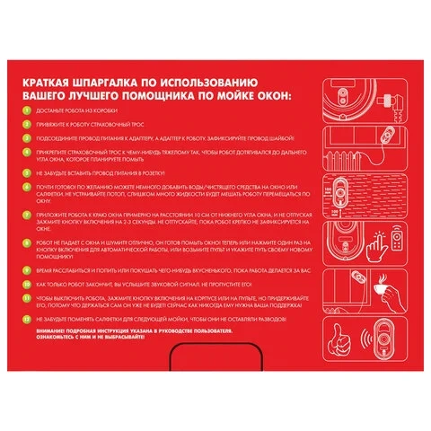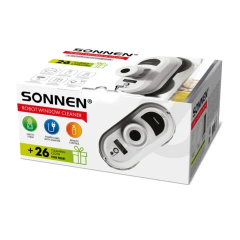 Робот-мойщик окон SONNEN Tech RWC-122 UltraClear не только сделает окна чистыми, но и обеспечит безопасность покупателя. Теперь не придется рисковать и мыть окна снаружи, робот с легкостью очистит все труднодоступные места за вас. Мощности 80 Вт достаточно, чтобы робот смог очистить 1 м2 за 3 минуты.