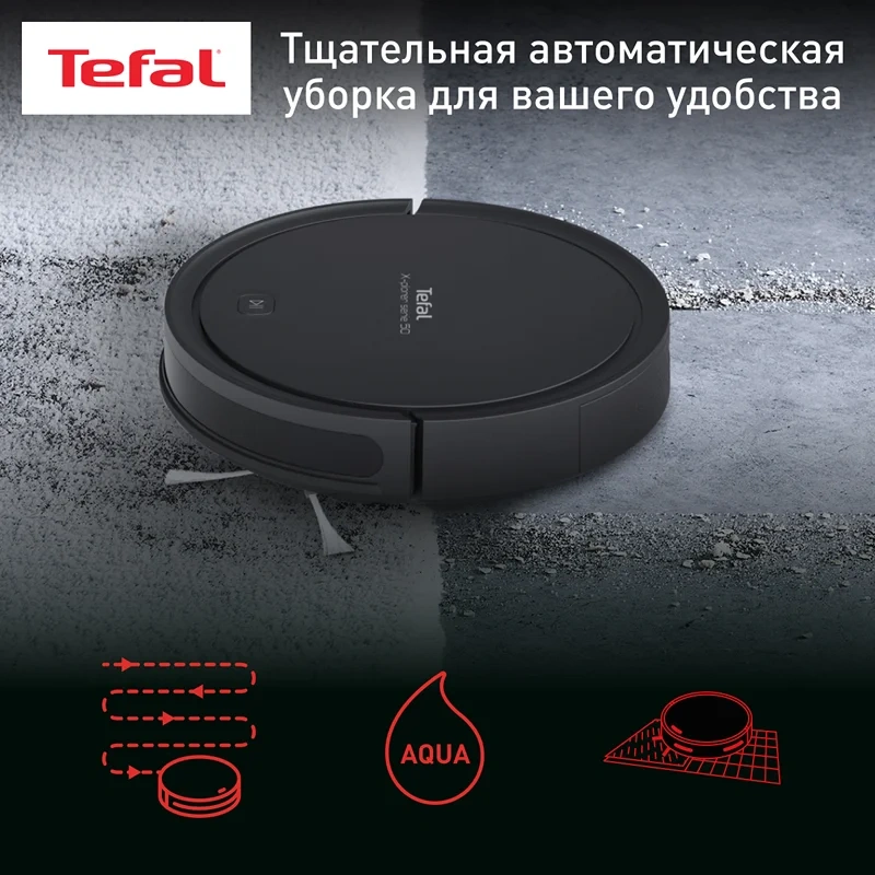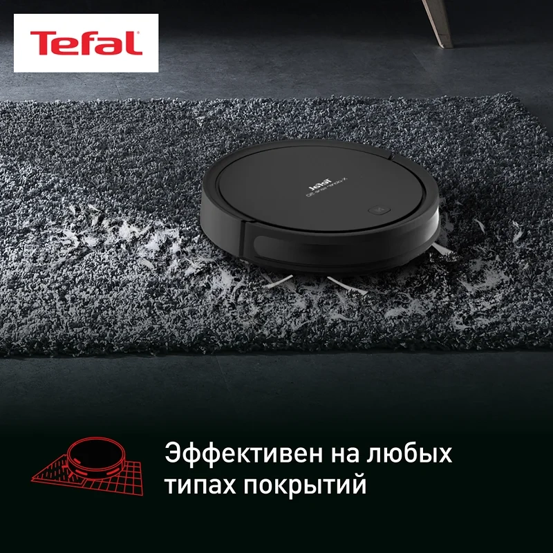 Робот-пылесос Tefal RG7375WH с системой Aqua Power способен проводить сухую и влажную уборку одновременно. Главной особенностью этого домашнего помощника стала высокоточная система навигации Smart Exploration 4.0, представленная инфракрасными сенсорами и встроенным гироскопом. Благодаря ее наличию прибор автоматически собирает пыль на всей поверхности пола. С интуитивным интерфейсом в приложении Tefal Robots легко разберется любой пользователь. С его помощью вы сможете установить мощность всасывания, назначить расписание уборки, следить за состоянием устройства и многое другое. Предусмотрена поддержка голосового ассистента Алиса от Яндекса. Приобретение пылесоса-робота Tefal RG7375WH станет особенно актуальным для владельцев домашних животных благодаря присутствию в оснащении высокоэффективной турбощетки Animal Turbo Brush. Она хорошо собирает волосы и шерсть, ликвидируя беспорядок, учиненный питомцами. Электронный бесщеточный мотор гарантирует неизменную мощность всасывания.