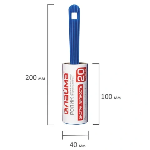 Клейкий блок собирает грязь одним движением по ткани. Комплект сменных блоков из 2-х штук позволяет использовать ролик на протяжении длительного времени и экономит средства. Когда намотка на ролике закончится, не нужно выкидывать ручку, просто замените сменный блок для ролика. Каждый блок содержит 20 листов, которые легко удаляются после использования. Диаметр ролика составляет 40 мм, а его высота 200 мм. Поставляется в упаковке с европодвесом.