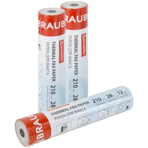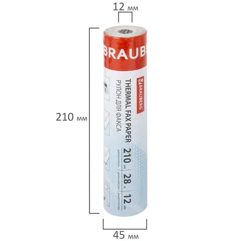 Ролик для факса Brauberg d=12мм, 210мм х 28м