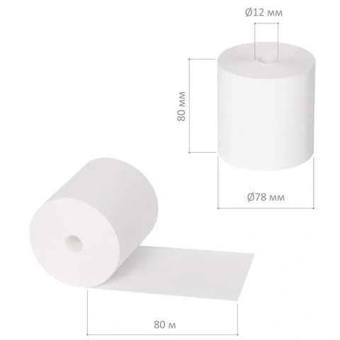 Cостоит из бумажной основы с нанесением на неё термочувствительного химического состава. Рулоны изготовлены на современном оборудовании, обеспечивающем ровную намотку и отсутствие бумажной пыли. Позволяют получить печать высокого качества и продлевают срок службы оргтехники. Чековая лента с наружным термослоем имеет ширину 80 мм и общую длину 80 м. Диаметр рулона - 78 мм, диаметр втулки - 12 мм. Плотность бумаги чековой ленты - 55 г/м2. Поставляется в термоусадочной пленке. 6 штук в комплекте.