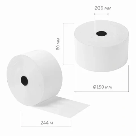 Лента состоит из одного слоя бумаги с нанесенным на него термоактивным покрытием. Бумага используется та же, что и для производства роликов для факсов. Ширина 57 мм. Длина намотки 40 м. Диаметр втулки 12 мм. Плотность 48+/-5 гр/м2 Толщина 55+/-2 мкм. Белизна 83+/-2%