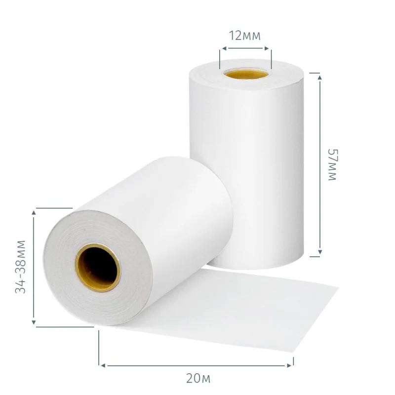 Чековая лента изготовлена из термобумаги. Бумажное полотно с наружным термослоем имеет ширину 57 мм и общую длину 20 метров. Диаметр намотки — 34–38 мм, диаметр втулки — 12 мм. Поставляются в термоусадочной плёнке и гофрокоробах. Ролики для термопечати используются в кассовых аппаратах и калькуляторах со встроенным или внешним термопринтером. Цвет печати — чёрный. Изготовлена из российской термобумаги с пониженными требованиями к качеству, белизна бумаги 82%. Чеки, напечатанные на ней, не подходят для сканирования из-за невысокой чёткости.