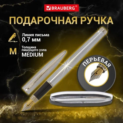 Перьевая ручка Brauberg Ballet синяя, 0.25мм, корпус серебистый с хром деталями