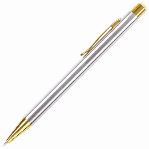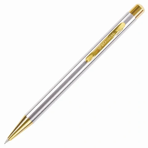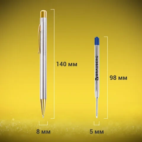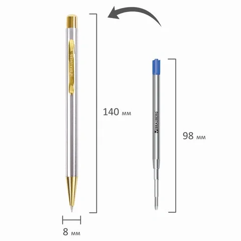 Шариковая ручка автоматическая Brauberg Piano синяя, 0.5мм, корпус серебристый с золотистым