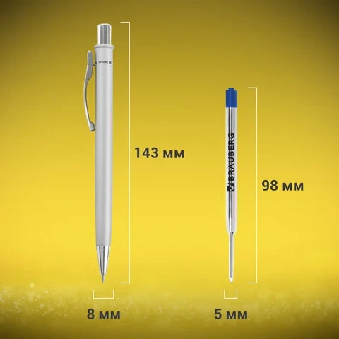 Шариковая ручка автоматическая Brauberg Vocale синяя, 0.5мм, корпус серебристый с хром деталями