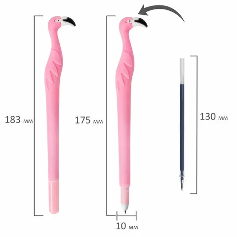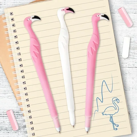 Шариковая ручка серии FUNNY YUMMY с мягким силиконовым корпусом и оригинальным дизайном в виде фламинго. Благодаря привлекательному дизайну ее не захочется выпускать из рук. Диаметр стандартного пишущего узла, равный 0,7 мм, создает линию письма, равную 0,35 мм. Длина сменного стержня составляет 130 мм. Цвет чернил - синий. Цвет корпуса - ассорти.