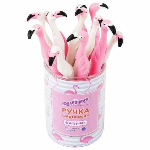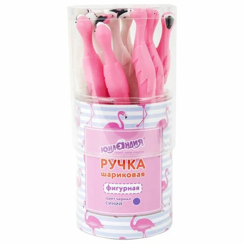 Ручка шариковая Юнландия Фламинго синяя, 0.35мм, мягкий корпус ассорти