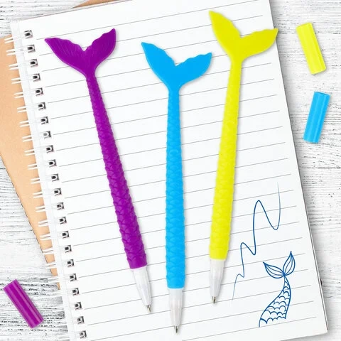 Ручка шариковая Юнландия Русалка синяя, 0.35мм, мягкий корпус ассорти