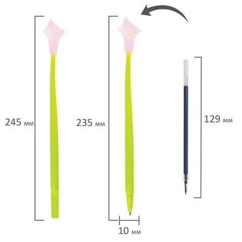 Шариковая ручка серии FUNNY YUMMY с мягким силиконовым корпусом и оригинальным дизайном в виде цветка. Благодаря привлекательному дизайну ее не захочется выпускать из рук. Диаметр игольчатого пишущего узла, равный 0,7 мм, создает линию письма, равную 0,35 мм. Длина сменного стержня составляет 129 мм. Цвет чернил - синий.