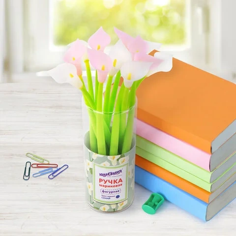 Ручка шариковая Юнландия Цветок синяя, 0.35мм, корпус ассорти