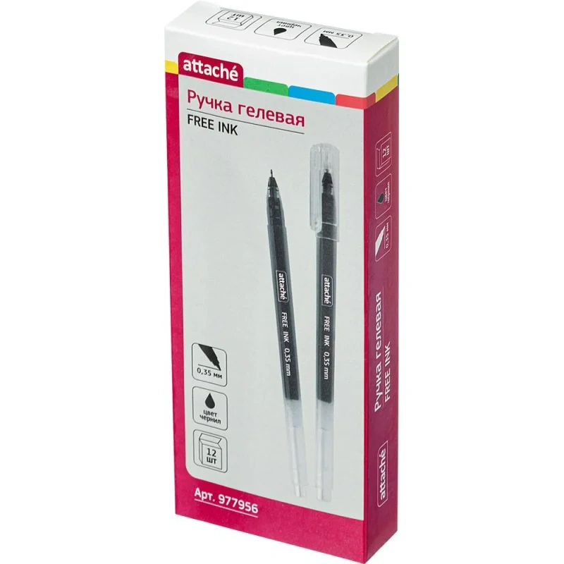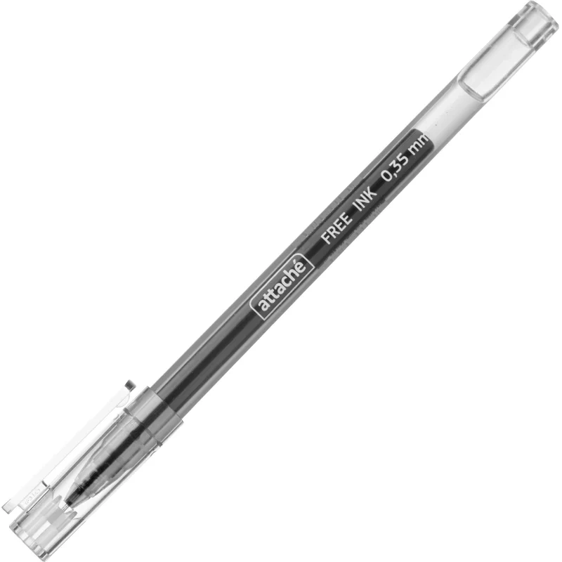 Ручка гелевая неавтоматическая Attache Free ink изготовлена из качественного пластика. Ручка обеспечивает легкое и мягкое письмо. Чернила быстро высыхают и не оставляют подтеков. Длина линии письма — 800 м. Ручка имеет круглый корпус прозрачного цвета, что позволяет следить за уровнем чернил. Смена стержня не предусмотрена. Диаметр пишущего узла, равный 0,5 мм, создает линию письма, равную 0,35 мм. Цвет чернил: черный. Игольчатый наконечник обеспечивает сверхтонкое письмо. Особый акцент этой ручке придает лаконичный дизайн.