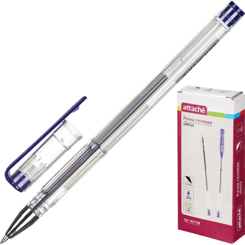 Ручка гелевая неавтоматическая Attache Economy Omega синяя (толщина линии 0.5 мм)
