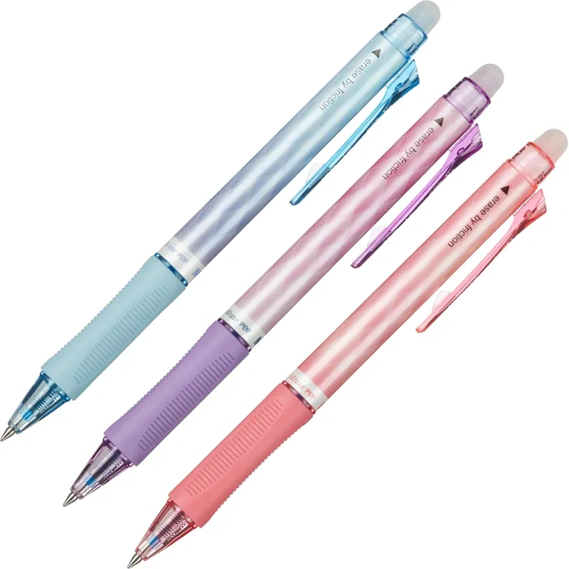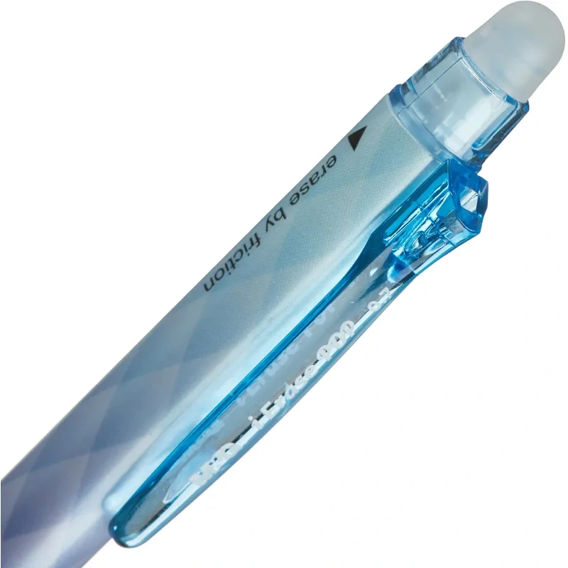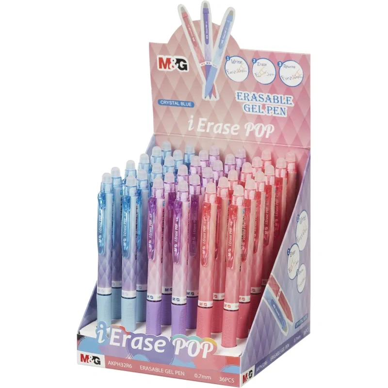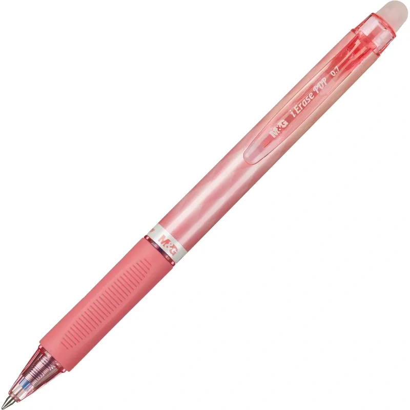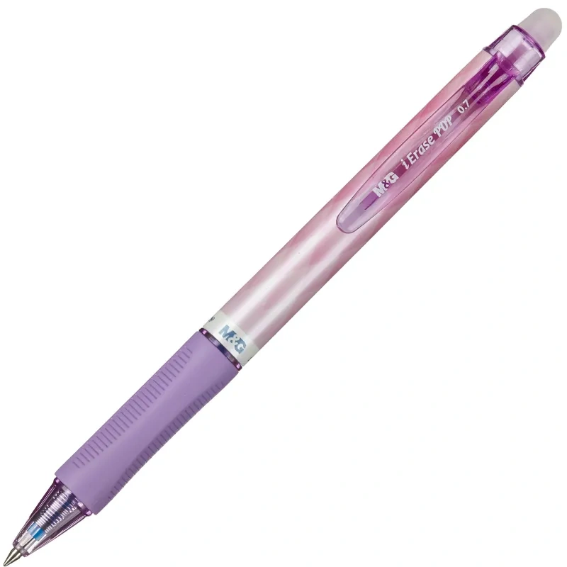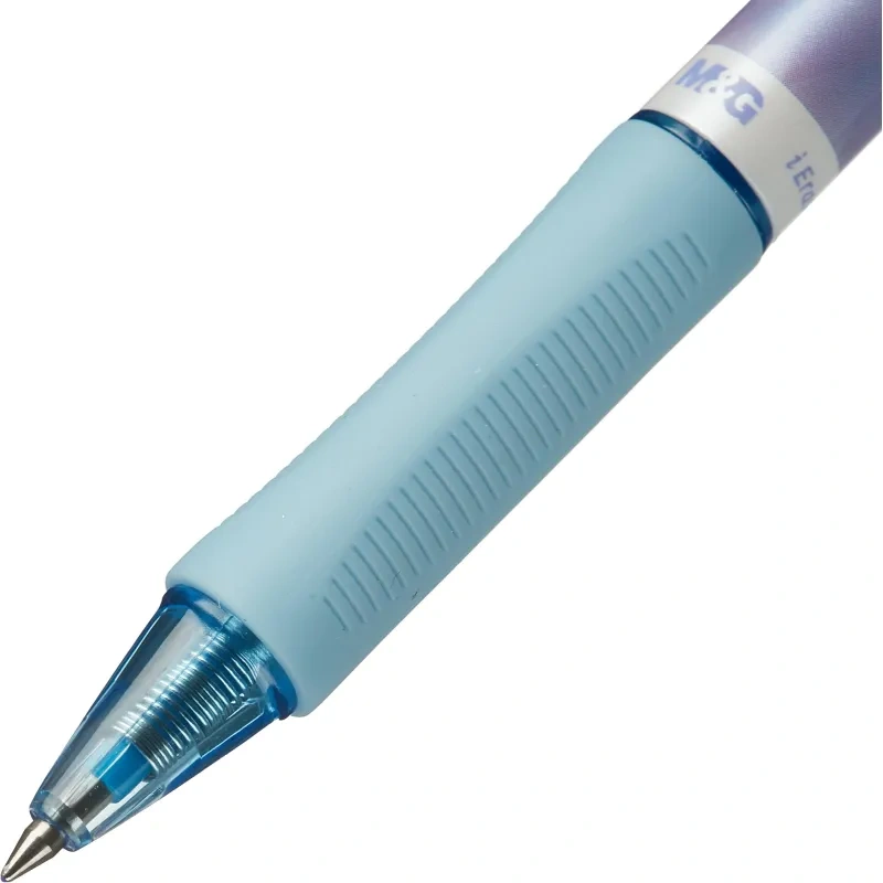Ручка гелевая автоматическая M&G со стираемыми чернилами синего цвета обладает стандартным наконечником, обеспечивающим толщину линии письма 0,6 мм. Термочувствительные чернила становятся невидимыми при нагревании. Для удаления надписи необходимо потереть ее специальным ластиком, встроенным в основание тыльной части ручки. При письме и стирании ручка не повреждает структуру бумаги, делая исправления незаметными. Ручка не рекомендована для использования в деловых документах.