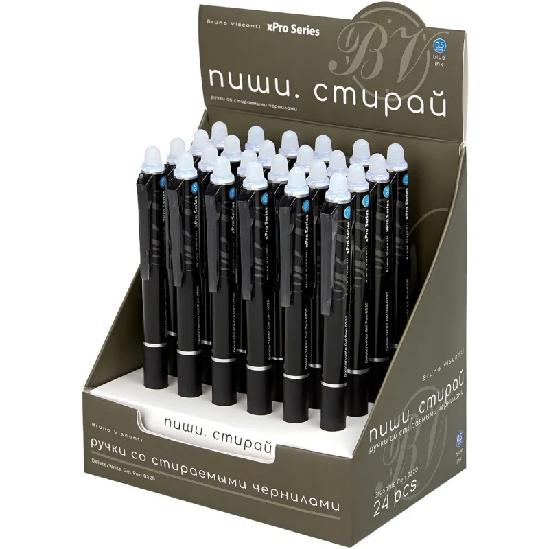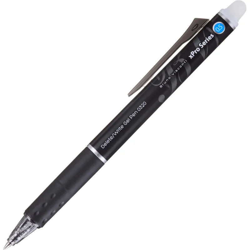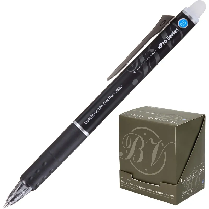 Ручка гелевая автоматическая со стираемыми чернилами Bruno Visconti Delete Click xPro Nero синяя (толщина линии 0.4 мм). Идеальный вариант для любителей «пиши-стирай». Следы гелевых термочувствительных чернил легко удаляются с помощью пластикового наконечника на конце ручки. Ручку можно использовать для ведения записей в офисе, учебных заведениях, в поездках, в домашних условиях.