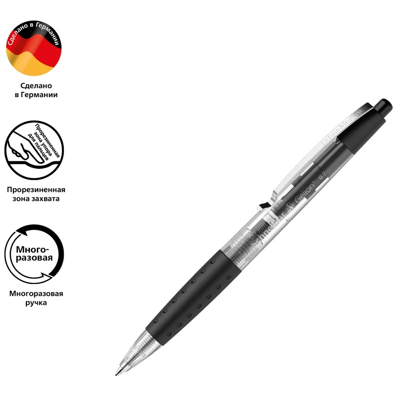 Ручка гелевая автоматическая Schneider Gelion+ черный, 0.7мм