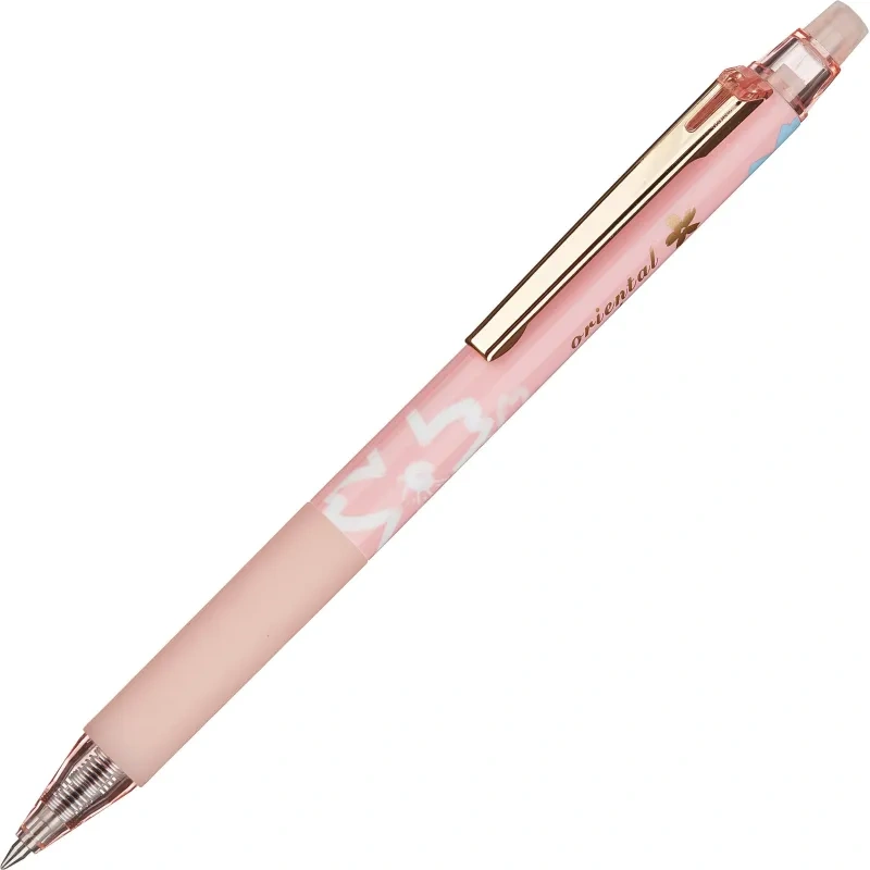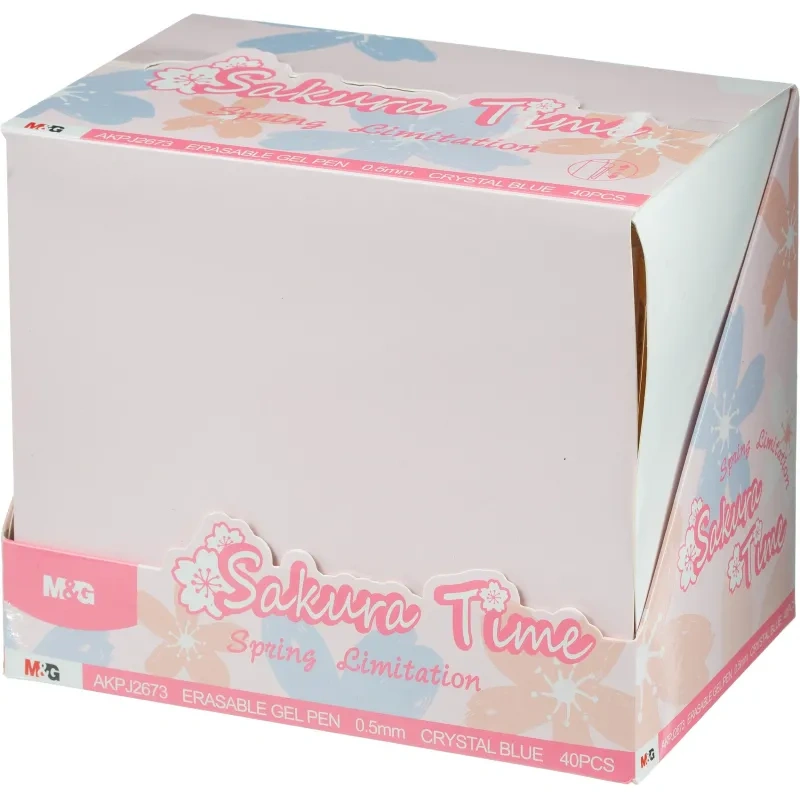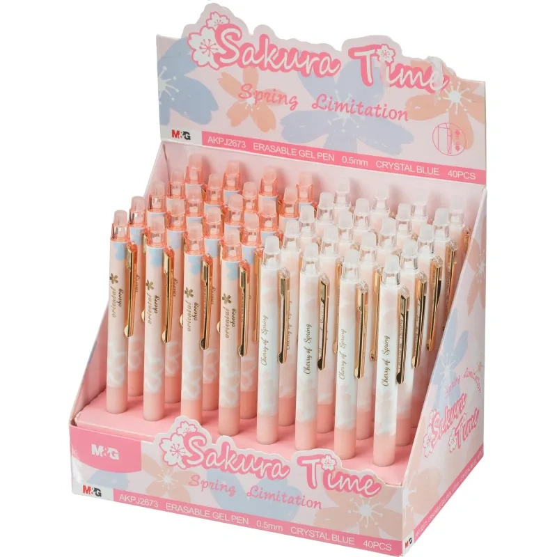Ручка гелевая автоматическая M&G Sakura со стираемыми чернилами синего цвета обладает стандартным наконечником, обеспечивающим толщину линии письма 0.35 мм. Термочувствительные чернила становятся невидимыми при нагревании. Для удаления надписи необходимо потереть ее специальным ластиком, встроенным в основание тыльной части ручки. При письме и стирании ручка не повреждает структуру бумаги, делая исправления незаметными. Ручка не рекомендована для использования в деловых документах.
