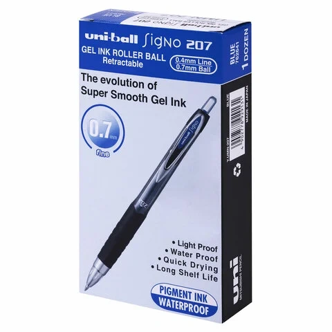 Ручка гелевая автоматическая Uni UMN-207 синяя, 0.7мм