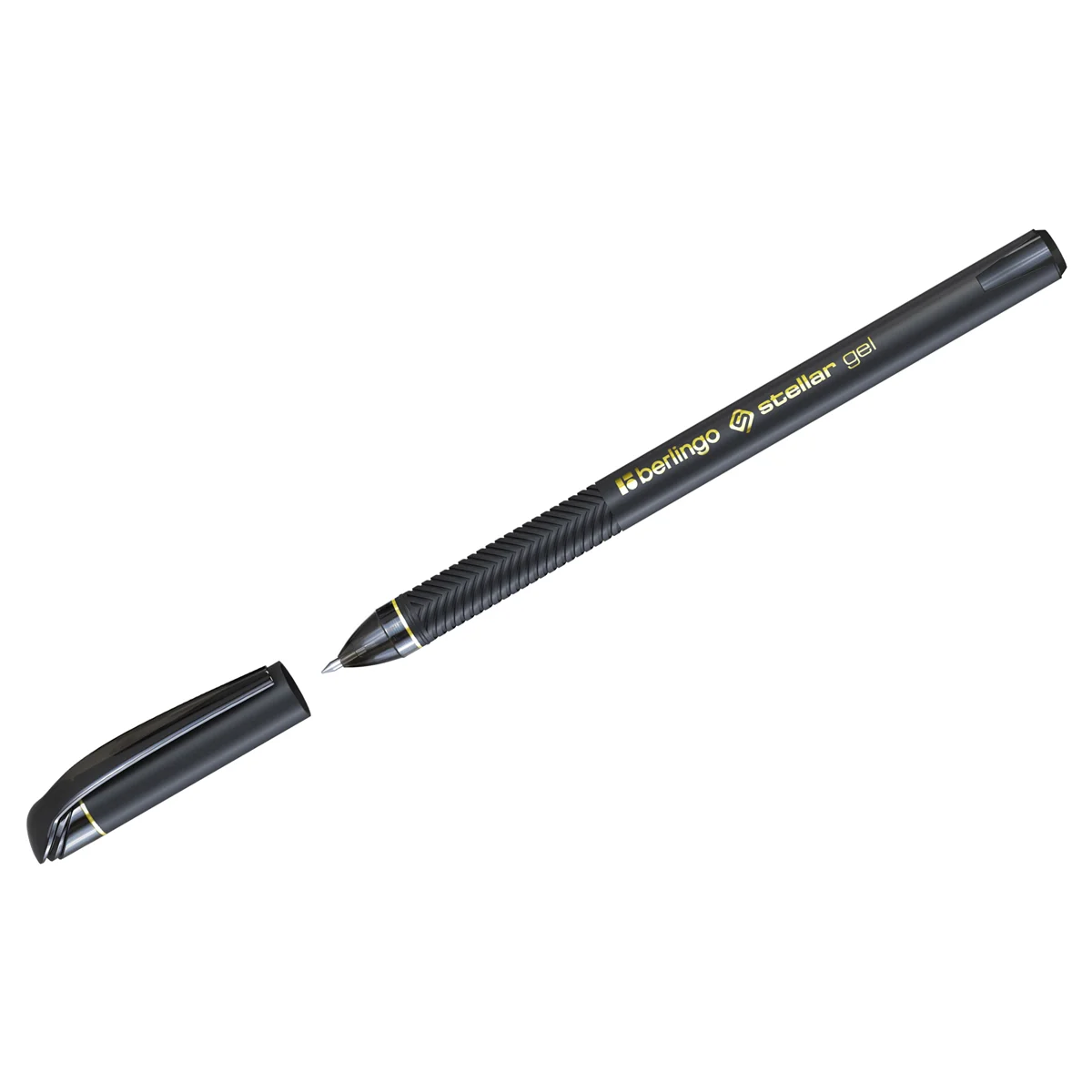 Гелевая ручка Berlingo Stellar gel стала воплощением строгого делового стиля, объединившим великолепное качество письма и солидный дорогой дизайн. Матовый корпус ручки с золотистыми элементами и печатью выполнен в увеличенном диаметре. Гелевые чернила последнего поколения пишут максимально ярко и мягко, мгновенно высыхают и совсем не мажут. Увеличенное количество чернил позволяет ручке достичь длины линии письма 1 500 метров, то есть в три раза больше стандартной. Рифление в зоне захвата придает дополнительный комфорт. А надёжный пластиковый клип позволит легко закрепить ручку на планшете, ежедневнике или кармане рубашки. Диаметр пишущего узла составляет 0,5 мм, а толщина линии письма – 0,35 мм. Цвет чернил – чёрный. В ручке используется инновационный пишущий узел с подпружиненным шариком, обеспечивающий дополнительные мягкость и комфорт при письме, а также предотвращающий протекание чернил при пониженном атмосферном давлении, например во время авиаперелета.