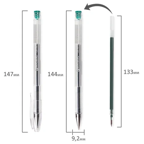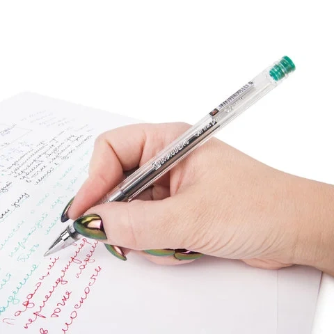 Ручка гелевая Brauberg Jet зеленая, 0.35мм, прозрачный корпус