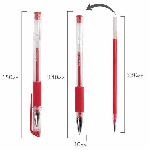 Имеет круглый прозрачный корпус с резиновым держателем. Детали ручки выполнены в цвет красных чернил. Сменный стержень длиной 130 мм со стандартным наконечником позволит использовать ручку максимально долго. Диаметр пишущего узла, равный 0,5 мм, создает линию письма, равную 0,35 мм.