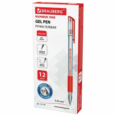Ручка гелевая Brauberg Number One красная, 0.5мм