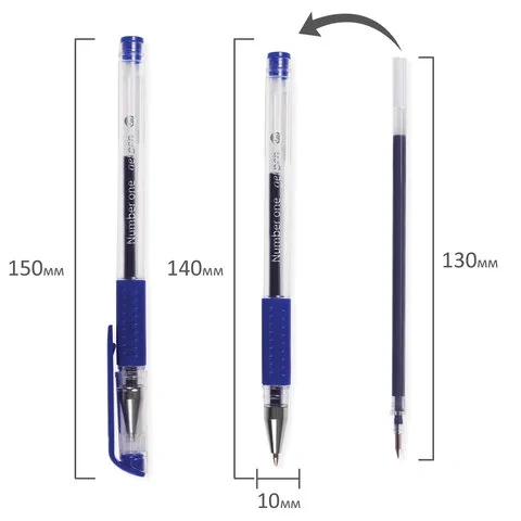 Имеет круглый прозрачный корпус с резиновым держателем. Детали ручки выполнены в цвет синих чернил. Сменный стержень длиной 130 мм со стандартным наконечником позволит использовать ручку максимально долго. Диаметр пишущего узла, равный 0,5 мм, создает линию письма, равную 0,35 мм.