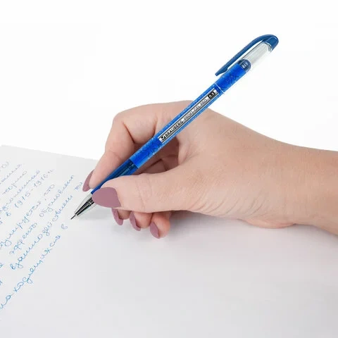 Удобная рифленая зона захвата снижает давление на пальцы рук при письме. Диаметр игольчатого наконечника 0,5 мм гарантирует лёгкое и четкое письмо без усилий. Стильный корпус с печатью. Цвет чернил – синий.