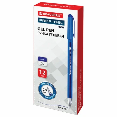 Гелевая ручка Brauberg Profi-Gel Tone синяя, 0.4мм, синий корпус