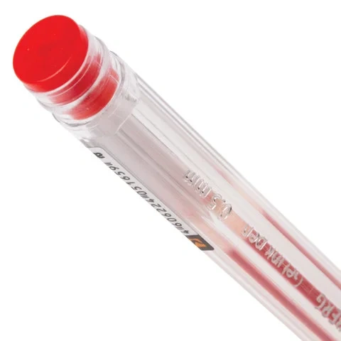 Имеет шестигранный прозрачный корпус с рифленой поверхностью в зоне захвата. Детали ручки выполнены в цвет красных чернил. Сменный стержень длиной 130 мм со стандартным наконечником позволит использовать ручку максимально долго. Диаметр пишущего узла, равный 0,5 мм, создает линию письма, равную 0,35 мм.