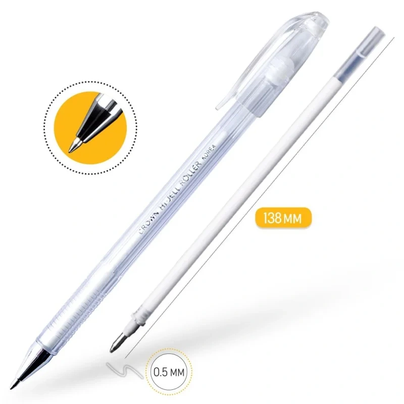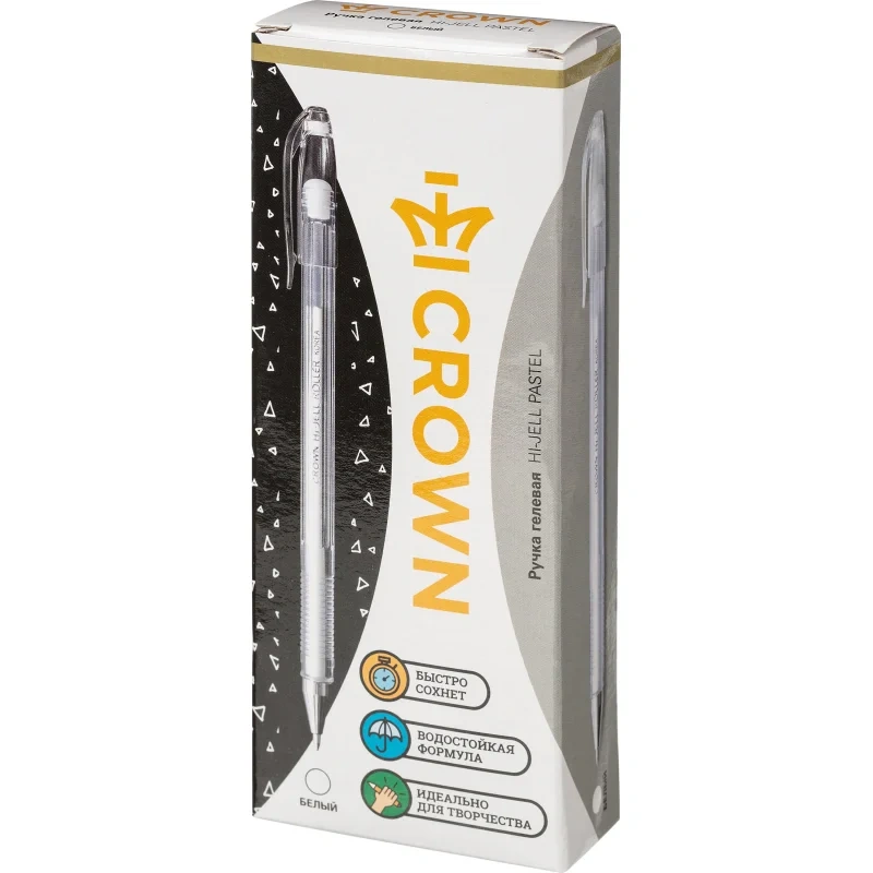 Гелевая ручка Crown Hi-Jell Pastel идеально подходит для художественных школ, хобби и творчества. Белая ручка применяется для создания рисунков на чёрной бумаге, прорисовки мелких деталей, дудлинга, отрисовки бликов, скрапбукинга, леттеринга, декорирования, и для рисования. Корпус сделан из высококачественного первичного пластика, который в случае поломки не оставляет острых углов и мелких осколков. Корейские гелевые чернила на водной основе обладают высокой светостойкостью и водостойкостью, мгновенно высыхают, не смазываются и обеспечивают мягкое и комфортное письмо. Благодаря гелеобразной консистенции чернил и специальной технологии двух подпружиненных шариков в пишущем узле гелевые ручки Crown обеспечивают мягкое и комфортное письмо. Равномерно измельчённый пигмент в составе чернил позволяет писать ярко без пропусков и исключает царапины на бумаге. Цвет чернил — белый, диаметр пишущего узла — 0,7 мм. Упаковка: картонная коробка по 12 штук. Расходные материалы для данной ручки не представлены в ассортименте производителя и в ассортименте компании Комус.