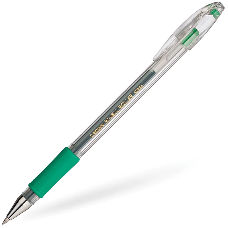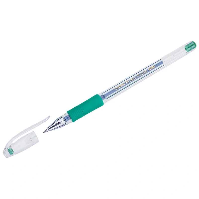 Ручка гелевая Crown 'Hi-Jell Grip' зеленая, 0,5мм, грип