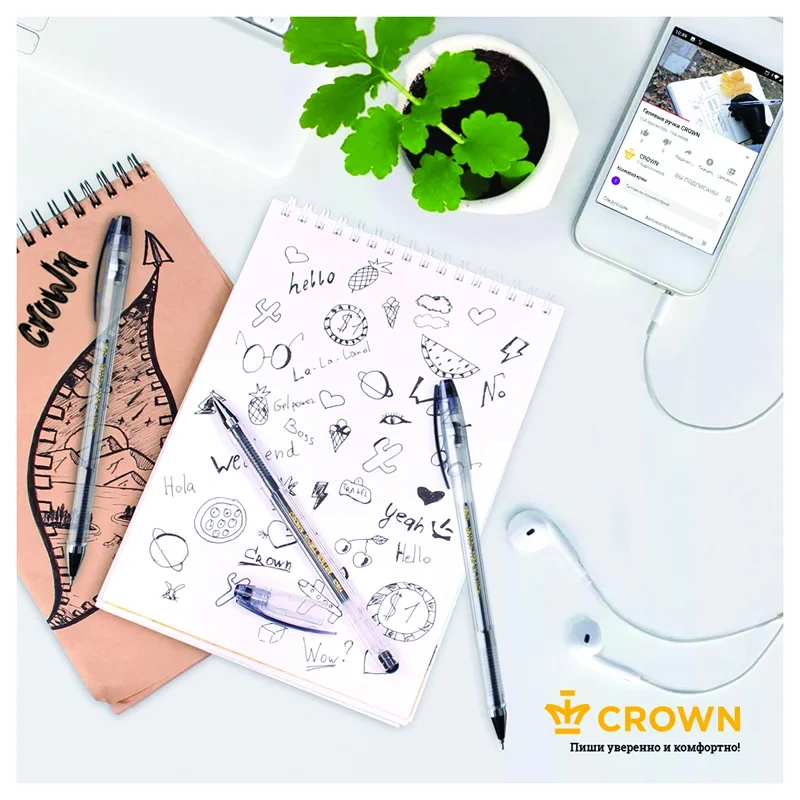 Благодаря гелеобразной консистенции чернил и специальной технологии двух подпружиненных шариков в пишущем узле гелевые ручки Crown обеспечивают мягкое и комфортное письмо.