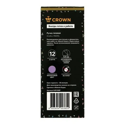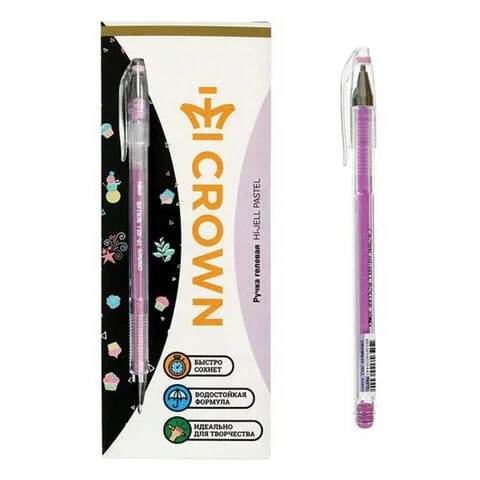 Гелевая многоразовая ручка Crown Hi-Jell Pastel с чернилами пастельных оттенков – надежная ручка для воплощения всех художественных идей. Диаметр пишущего узла - 0,8 мм, благодаря чему получается ровная насыщенная линия. Цвет чернил – фиолетовый.Она идеально подойдет для скрапбукинга, леттеринга или рисования. Корпус сделан из высококачественного пластика, который при поломке не оставляет мелких осколков. Корейские гелевые чернила на водной основе обладают высокой светостойкостью и водостойкостью, мгновенно высыхают, не смазываются. Благодаря гелеобразным чернилам и специальной технологии пишущего узла гелевые ручки Crown Hi-Jell Pastel обеспечивают мягкое и комфортное письмо. Равномерно измельченный пигмент в составе чернил позволяет писать ярко без пропусков и исключает царапины на бумаге.В упаковке 12 штук.