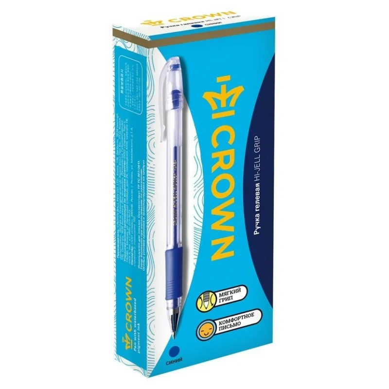 Гелевая ручка Crown Hi-Jell Grip — надежная ручка проверенная временем. Синяя ручка идеально подходит для экзаменов, ведения документооборота, заполнения бланков, заметок в ежедневнике, заполнения личного дневника, рисунков в скетчбуке. Корпус сделан из высококачественного первичного пластика, который в случае поломки не оставляет острых углов и мелких осколков. Корейские гелевые чернила на водной основе обладают высокой светостойкостью и водостойкостью, мгновенно высыхают, не смазываются и обеспечивают мягкое и комфортное письмо. Благодаря гелеобразной консистенции чернил и специальной технологии двух подпружиненных шариков в пишущем узле гелевые ручки Crown обеспечивают мягкое и комфортное письмо. Равномерно измельченный пигмент в составе чернил позволяет писать ярко без пропусков и исключает царапины на бумаге. Прорезиненная зона захвата снижает давление на пальцы рук при письме. Цвет чернил — синий, диаметр пишущего узла — 0,7 мм. Упаковка: картонная коробка по 12 штук. Пиши комфортно и рисуй ярко вместе с гелевыми ручками Crown. Расходные материалы для данной ручки не представлены в ассортименте производителя и в ассортименте компании Комус.