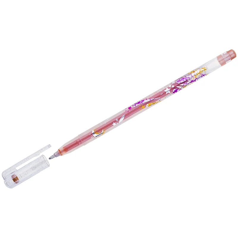 Ручка гелевая Crown Люрекс оранжевая, 1мм, одноразовая