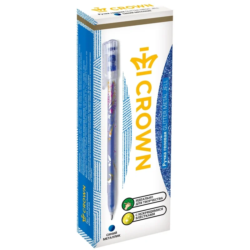 Ручка гелевая Crown Люрекс синяя, 1мм, одноразовая