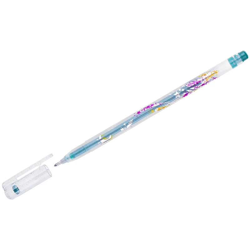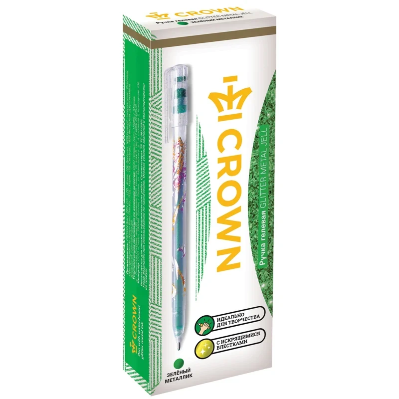 Ручка гелевая Crown Люрекс зеленая, 1мм, одноразовая
