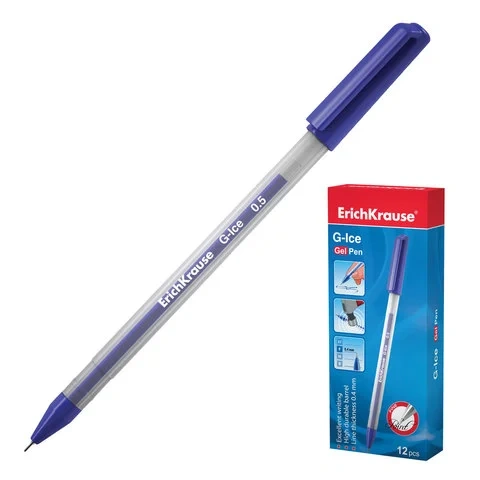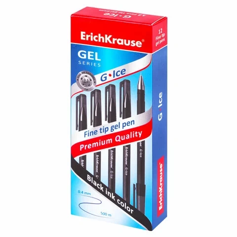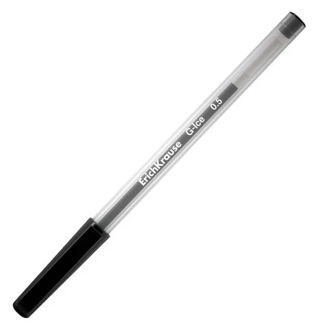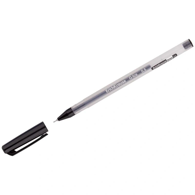 Ручка гелевая Erich Krause G-Ice черная, 0.4мм, прозрачный корпус