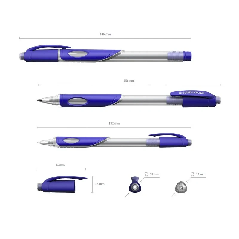 Гелевая ручка Stick&Grip со стираемыми чернилами, стандартным типом пишущего узла и заменяемым стержнем. Ручка имеет полупрозрачный матовый корпус и треугольную эргономичную грип-зону с выемками для пальцев. Ластик располагается на колпачке. Пишущий узел с диаметром шарика 0.5 мм в сочетании с гелевыми быстросохнущими чернилами обеспечивает точное и быстрое письмо без усилий. Длина непрерывной линии составляет 300 м при толщине 0.4 мм. Модель ErgoLine Magic Ice рекомендована для постановки правильных навыков письма.