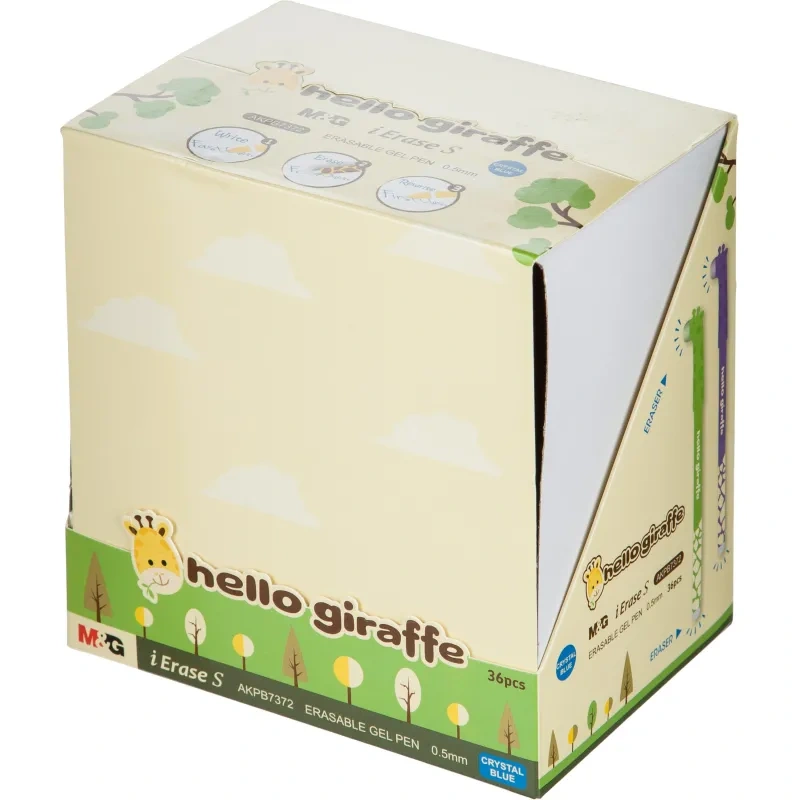Ручка гелевая неавтоматическая M&G со стираемыми чернилами синего цвета обладает стандартным наконечником, обеспечивающим толщину линии письма 0,4 мм. Термочувствительные чернила становятся невидимыми при нагревании. Для удаления надписи необходимо потереть ее специальным ластиком, встроенным в основание тыльной части ручки. При письме и стирании ручка не повреждает структуру бумаги, делая исправления незаметными. Ручка не рекомендована для использования в деловых документах. Корпус имеет покрытие soft touch.