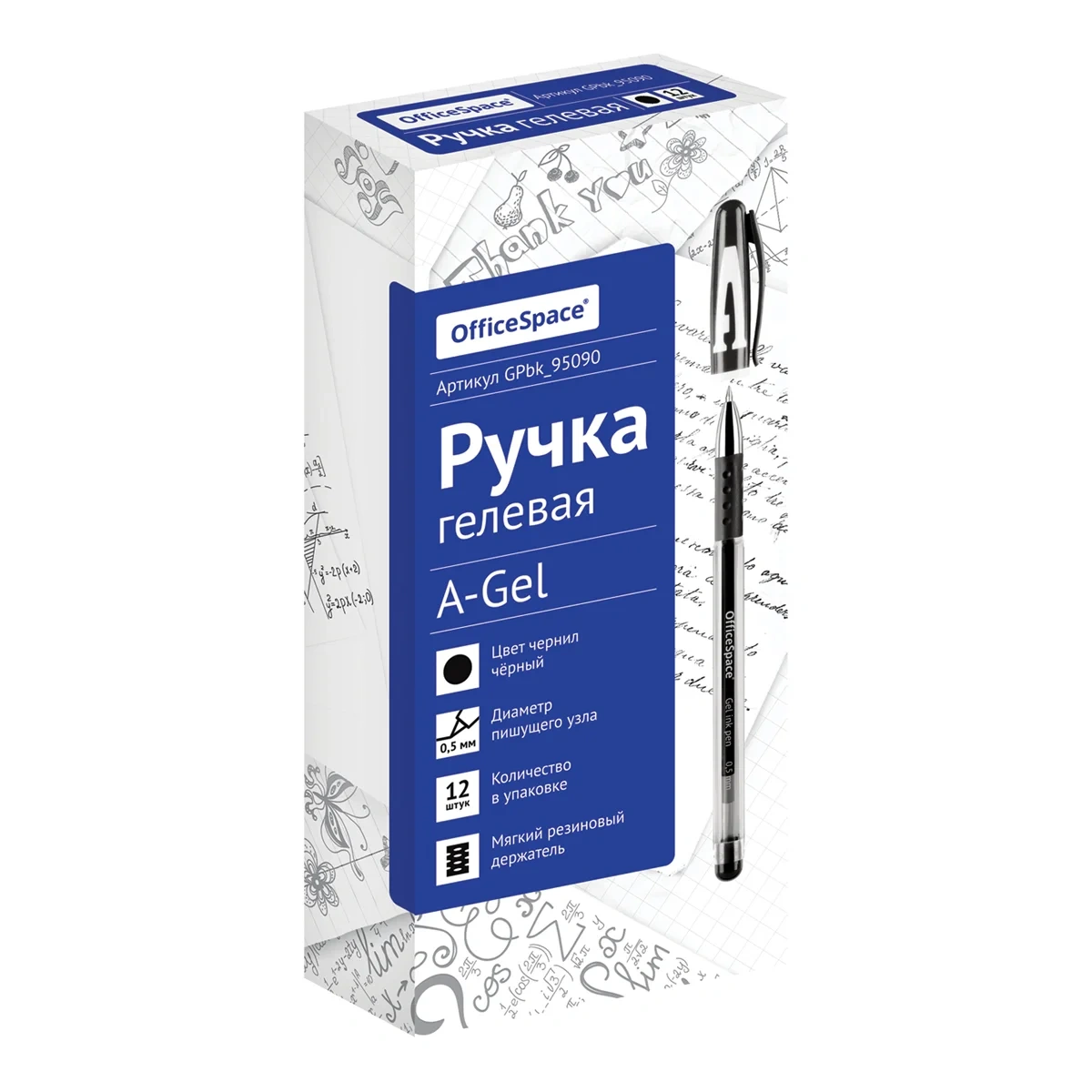 Ручка гелевая OfficeSpace 'A-Gel' черная, 0,5мм, грип
