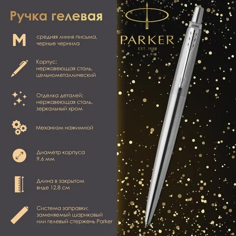 Ручка гелевая PARKER 'Jotter Stainless Steel CT', корпус серебристый, детали из нержавеющей стали, ч