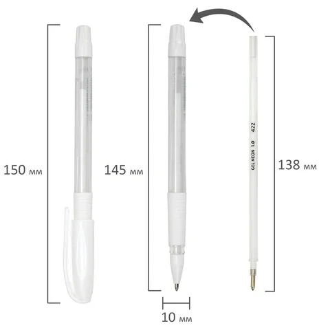 Гелевая ручка Pensan Neon Gel белая, 0.8мм, прозрачный корпус